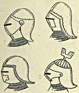The average Englishman is probably more unacquainted with arms and armour than any other technical subject. Beyond a general idea that the Crusaders fought in mail, and the Wars of the Roses were waged by warriors clad in plate, his knowledge does not extend, and he consequently witnesses many startling incongruities upon the stage of a theatre, or the arena of a pageant, with the most profound indifference. He will perceive Richard III. in a camail and[Pg xii] Ivanhoe in a salade with the utmost complacency. The pity of it is that those who are responsible for the historical inaccuracies should be so ignorant, for no effort ought to be spared in endeavouring to educate the nation, and especially the youth of it, in the fundamental principles of rigid historical truthfulness. In our theatres recently we have witnessed Bolingbroke in a fifteenth century tabard, a waist-belt, and round-toed sabbatons, with the Duke of Norfolk in an almost equally grotesque parody of the Camail and Jupon Period; Pistol with a basket-hilted rapier; Henry V. in a camail, late fifteenth century gauntlets, twentieth century boots, and vambraces covering parts of his coudières. Upon the arena knights of Richard II.’s period have appeared in full plate armour of 1470; at Queen Eleanor’s funeral without ailettes; while bear’s-paw sabbatons have figured conspicuously in many scenes previous to 1480. These are elementary details which even a cursory knowledge of military equipment could avoid, but in the illustrations of historical scenes in books and magazines equal ignorance prevails, and a knight in pure mail and a surcoat, making love to a maiden in a reticulated head-dress seated under a two-centred Tudor archway, is only an example of the incongruities which almost every day insult the intelligence and offend the eyesight of the educated reader. Unfortunately many illustrators go to the works of Sir Walter Scott for details of mediæval military equipment, and are thereby led hopelessly astray.