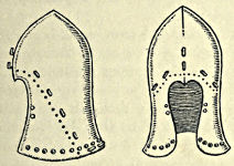 The Tunic.—This was invariably of a quilted material, thickly padded, and generally composed of linen several times folded; it could resist a cutting weapon but not the[Pg 23] point of a sword or lance. Over it was placed the pectoral, which covered the shoulders as well as the chest, and was very similar to the mediæval camail.