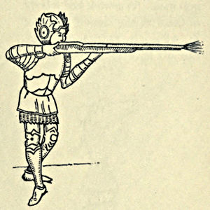 The Lance.—The spear, javelin, and lance of the Bronze and Iron Periods down to the time of the Saxons and Normans have been treated under their different headings. For three centuries after the Norman Conquest the spear does not exhibit any remarkable change; it was of uniform size and thickness from end to end, with a lozenge or leaf-shaped head, rarely barbed, the lozenge being the commoner form. For tournament purposes the heads were blunted, but as jousting became more popular special points or coronals were introduced, of which examples are shown in most museums. These were not intended to pierce, but only to give a grip upon plate armour.
