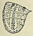 The Shield was used only by the spearmen, and was about a yard in height; it was of peculiar shape, being rectangular in the lower part and semi-circular in the upper, where a round opening was pierced, through which the approach of the enemy could be viewed with safety. The outer parts were covered with leather strengthened with rings and studs.