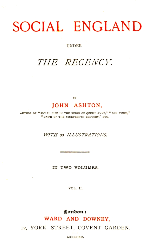 SOCIAL ENGLAND UNDER THE REGENCY. By John Ashton. Profusely Illustrated. 2 vols., demy 8vo, 30s.