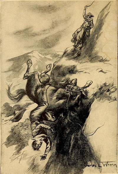 THE NEXT INSTANT JACK AND THE PONY WENT ROLLING AND PLUNGING OFF THE TRAIL DOWN TOWARD THE RIVER.—Page 36.