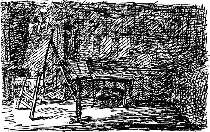 Geseegnet der gute Trieb der mir eingab statt allen weitern Schreibens, Ihnen meine Stube, wie sie da vor mir steht, zu zeichnen. Adieu. Halten Sie einen armen iungen am Herzen. Geb Ihnen der gute Vater im Himmel viel muthige frohe Stunden wie ich deren offt hab, und dann lass die Dämmrung kommen, tränenvoll und seelig — Amen