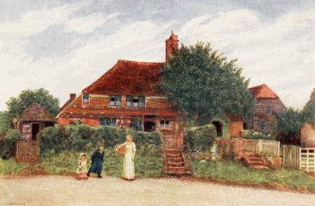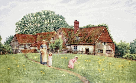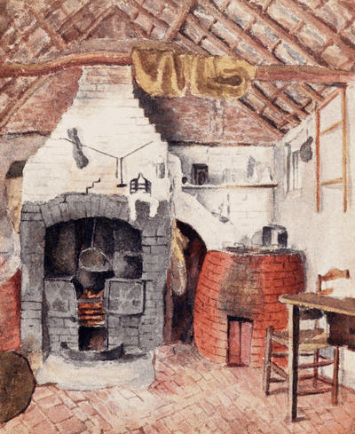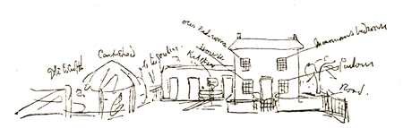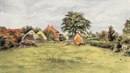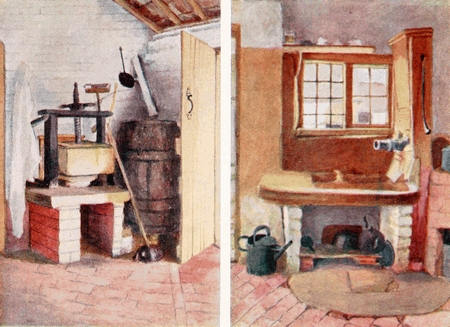 [1] The drawings of the cheese-press, the pump, and the fireplace in the kitchen of the cottage, as well as of the croft at Rolleston, here reproduced, were executed by Kate Greenaway while she was still a girl.