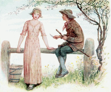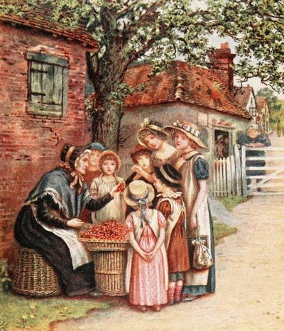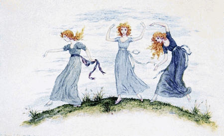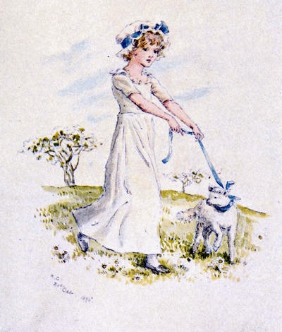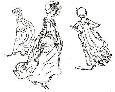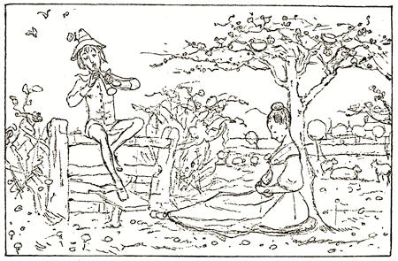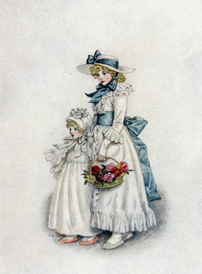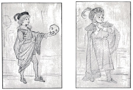 [20] At this sale Kate Greenaway’s illustrations to Topo fetched—after the copyright had been used—35 guineas; whilst others of her pictures sold were ‘Three Innocents,’ 12 guineas; ‘My Lady and her Pages,’ 23 guineas; ‘The Seasons,’ 17 guineas; ‘The Time of Roses,’ 18 guineas; ‘On the Road to the Ball,’ and ‘The Fancy Dress Ball,’ £28; and ‘My Lord’s Page and my Lady’s Maid,’ 13 guineas.