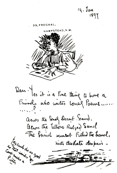 From the facsimile letter given in the following pages, it will be observed that Kate Greenaway later on developed a habit of frequently employing capital letters in unusual places. These, as a mere eccentricity, have been corrected in transcription.