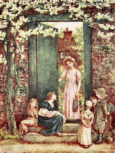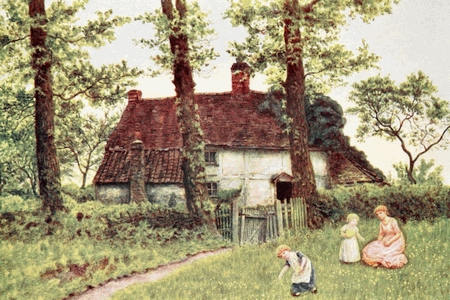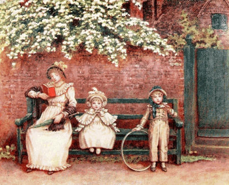 A word must be said concerning the illustrations. The published works of Kate Greenaway are known, and ought to be found, in every house where children live and are loved. We have therefore confined ourselves, with a few rare and intentional exceptions, to work quite unknown to the public, such as early drawings of the cottage at Rolleston where her career, undreamed of as yet, was being determined, thumb-nail sketches with which she embellished her letters, and more important drawings done for sale to picture-buyers or for presentation to friends. About half a hundred have been reproduced with particular care by the ‘three-colour process,’ for the most part with extraordinary success, the rest by other methods suited to the exigencies of the case. For the use of the originals we are indebted to the kindness of many owners—to Her Grace the Duchess of Bedford, to Mr. Ernest G. Brown, Miss Violet Dickinson, Mr. Alfred Emmott, M.P., Mr. W. Finch, Mr. Campbell S. Holberton, Mr. Charles P. Johnson, Mrs. W. Levy, the Hon. Gerald Ponsonby, Mr. John Riley, Mr. Stuart M. Samuel, M.P., Mrs. Arthur Severn, Mr. Henry Silver, the Hon. Mrs. W. Le Poer Trench, Mr. Harry J. Veitch, Mr. Wm. Marcus Ward, and Mr. Creeser, as well as to Mr. John Greenaway. Other illustrations come from the collections of Miss Evans, Lady Victoria Herbert, Mrs. F. Locker-Lampson, Rev. W. J. Loftie, F.S.A., Lady Pontifex, and Mr. B. Elkin Mocatta. To all of them we express our hearty thanks, and to Messrs. Cassell & Co. our indebtedness for having permitted the publication of the border illustration with Mr. Austin Dobson’s ‘Home Beauty,’ the[xii] copyright of which they hold; and to Messrs. M’Caw, Stevenson & Orr, Ltd., of Belfast, similar acknowledgments must be made for according their consent in respect of the three famous Christmas cards which appear in colour. Our thanks are also due to Messrs. Frederick Warne & Co. for their courtesy in allowing us to reproduce the illustrations of ‘Bubbles’ and ‘The Bubble’ as well as the end-papers. The last-named are based upon the nursery wallpaper to which, with the artist’s permission, the illustrations of one of her Almanacks were adapted by Mr. David Walker. Messrs. Warne are the present holders of the bulk of Kate Greenaway’s published copyright work as well as of the stock of books which were originally issued by Messrs. G. Routledge & Sons, and from them nearly all the books dealt with in the following pages are still to be obtained.