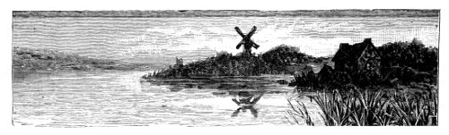 Very charming are these villages and small country towns with their quaint old cottages and picturesque little houses bordering the wide street. Great elms shade the foot-path, and sweet gardens are at the side or back of each dwelling. Perhaps a clear river winds its way amidst the ruddy buildings, its banks converted into diminutive kitchen-gardens, and crossed here and there by bridges. The long low building of a water-mill seems to block the way altogether, but in reality it simply utilises the water to turn its wheels, and we shall find the river on the opposite side with its waters banked up some six or eight feet higher, changed in character, looking more still and deep, reflecting the surrounding objects in a still, silent pool, shaded by lofty trees, its banks clothed with deep grass plantains, huge docks and marsh mallows, a spot where, on a sunny day, an irresistible inclination seizes one to lie down on the cool earth. The clinging foliage seems to second the invitation, and one throws oneself down upon this sweet verdant couch to "dream with one's eyes open," for who could close them in such an enchanting spot? But somehow or other, whether it is the "whirr" of the water-wheel, the fragrant scents of the plants we are crushing, or the peace surrounding one, time seems to glide away, and, upon consulting our watch, we discover the mysterious fact that the day has become two hours shorter! Of course we have not been to sleep!