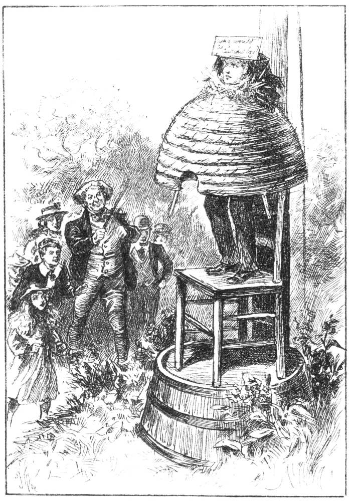 “Indeed, they were terrible,” said Faith. “Poor Libbie will talk of that afternoon for the rest of her life, I am sure. And oh, mother, you can’t think how angry the farmer was, and what a bad time poor Mrs. Busson has had in consequence. That was why we thought that, after all, Andrew was very lucky to get off with no worse punishment than being dressed up in a monster bee-hive, and tied up to the flag-staff on the top of the mound in the orchard. Of course, it was dreadful to be made such a laughing stock to everyone, and it must have been very tiring and disagreeable altogether,” went on Fay, entering more fully into various details of Andrew’s form of punishment; “but,” she wound up, “though it was hard on Andrew to be forgotten, and left to himself, it was too mean of him to make poor little Gaston stand up there in—”