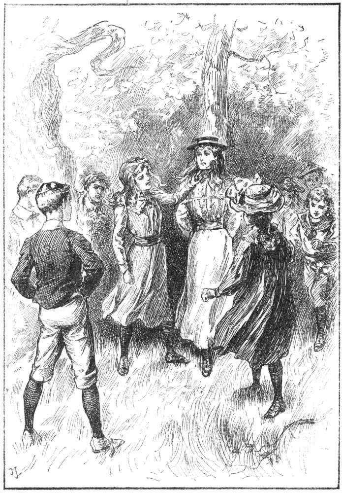 “Oh! I guess,” cried Phoena, and in another minute she had dashed out of doors, across the garden, and on to the orchard, with all the others following her.