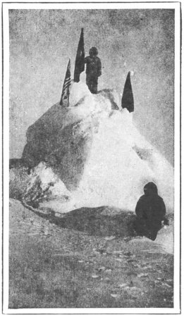 “But now,” he writes in his book, “The North Pole,” “while quartering the ice in various directions from our camp, I tried to realize that, after twenty-three years of struggles and discouragement, I had at last succeeded in placing the flag of my country at the goal of the world’s desire. It is not easy to write about such a thing, but I knew that we were going back to civilization with the last of the great adventure stories,—a story the world had been waiting to hear for nearly four hundred years, a story that was to be told at last under the folds of the Stars and Stripes, the flag that during a lonely and isolated life had come to be for me the symbol of home and everything I loved—and might never see again.”