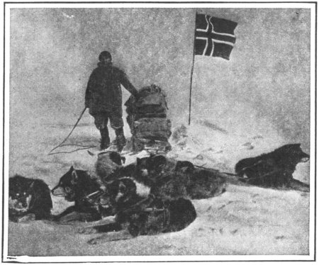 AT THE SOUTH POLE—PHOTOGRAPHED BY AMUNDSEN