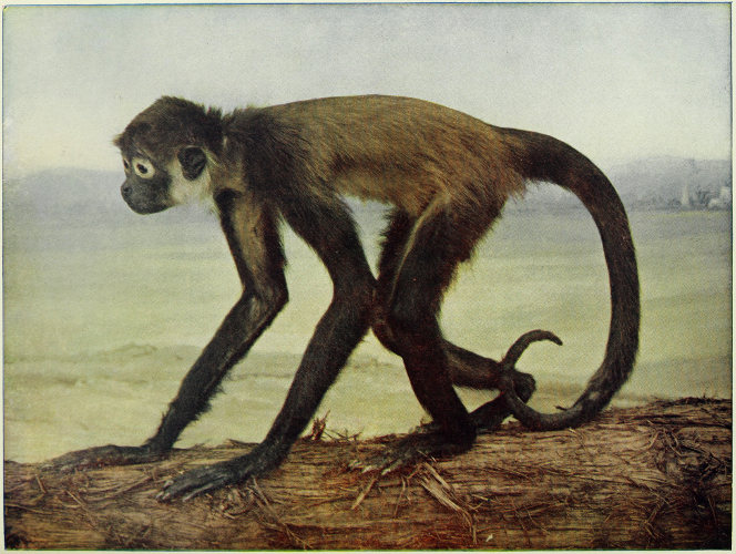 Aside from the Miriki Spider Monkey, of which our little mother was so interesting a specimen, the traveling party from time to time encountered other species of the Spider Monkey, of which there are many. All have similar characteristics but vary somewhat in size and color.