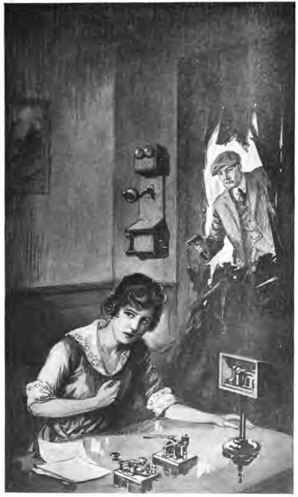 The room was almost in darkness by this time, and a chair was knocked over in their struggles. But still MacNutt bore her, fighting and panting, toward the little table between the two windows, where the telephone transmitter stood.