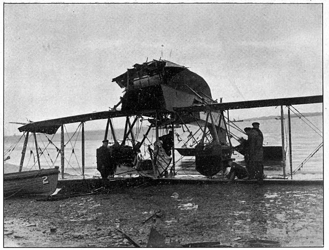 There is a tang of salt in the adventures of the men who boomed out in them over the narrow waters, for they had to do with submarines and ships, and all that that implies. In their job o' work of bombing U-boats, attacking Zeppelins, fighting enemy seaplanes, and carrying out reconnaissance and convoy duties, there is as much romance as in any particular effort in the war. In the future, grown great in size, the boats will form the winged Navy, and will carry mails and passengers over the water-routes of all the world.
