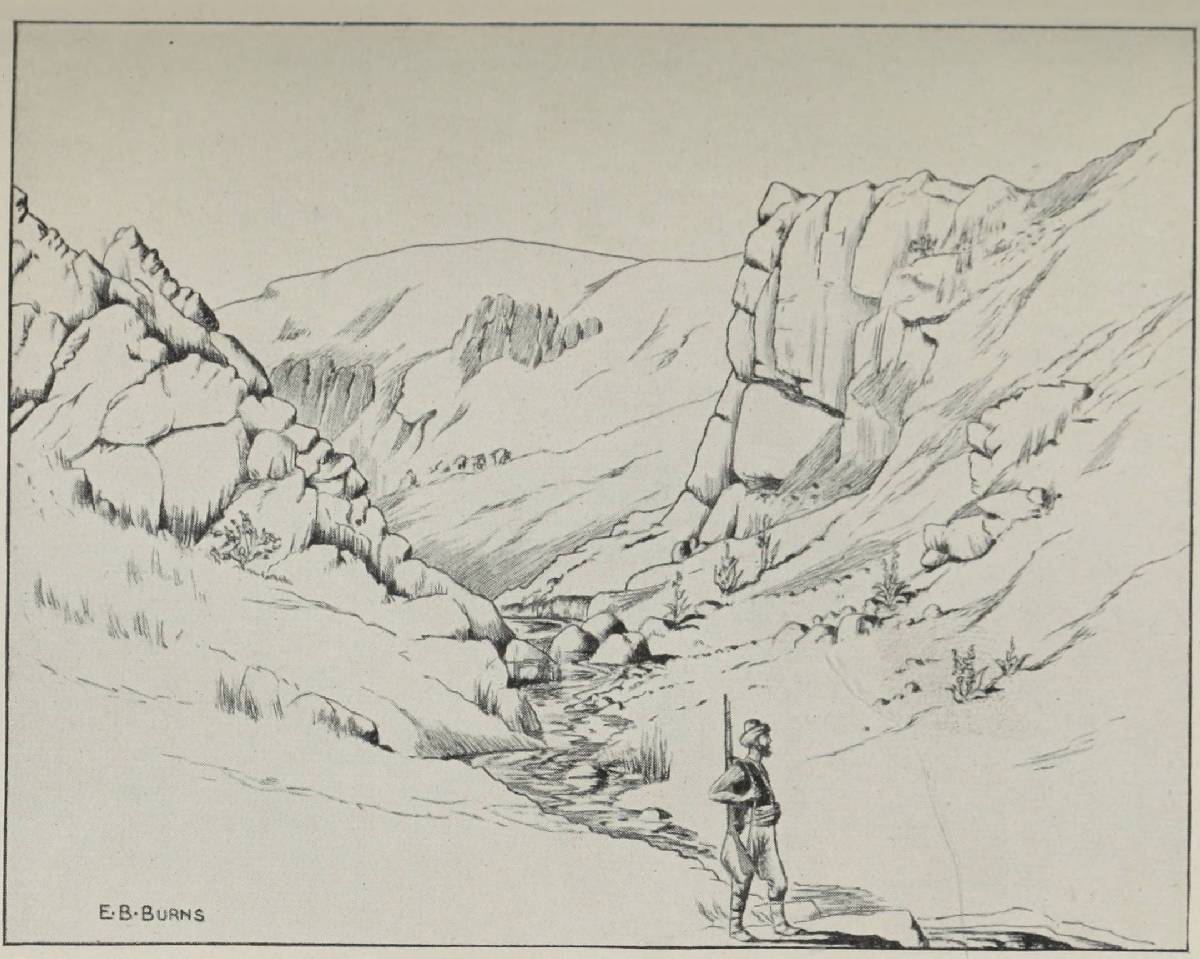 By 2 P.M. we were clear of Kastamoni.[8] The change of camp would be a great break in the monotony of our existence, and for the time being we were happy. The journey was to take four days. At night we halted near water at a suitable camping-ground by the roadside, and in the early morning started off again. A healthy life and a great holiday for us. For the first two days the scenery was magnificent, as we crossed the forest-covered Hilgas range, but as we approached our destination the country became more and more barren. On the fourth day, coming over a crest, we saw the village of Changri built at the foot of a steep and bare hill. We went through the village, and a mile beyond us stood our future home.