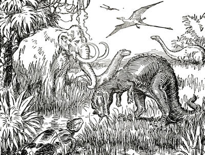 During all these long centuries, many, many thousands of years, the people from the valley where Adh and his wife first lived had been spreading far out over the surface of the earth. Many boats and canoes, carried by storms from the country of the sea people, were driven to other countries, and all around the shores of the sea new tribes were springing up. Century after century, as these tribes became larger, and game grew scarce, new bands of adventurers wandered off into the wilderness inland, and from the tribes they formed still other bands wandered away. Some crossed great lakes and seas in boats, others drifted down mighty rivers for hundreds, and even thousands, of miles, on rafts. Mountain ranges were crossed to find new hunting grounds, and new tribes were formed, which in their turn sent out other bands of adventurers.[286] During all this time the face of the earth was changing. Great glaciers from the frozen north crept southward century after century, grinding the surface of the rocks like giant ploughs. Earthquakes and floods caused new continents to rise where before there had been only seas, or made seas, in places where there had been dry land. Mother Nature's new race of men had to fight the heat and the cold, the storms and the sea, as well as the fierce animals which were always ready to attack them, but in spite of all these things, they spread and grew, year after year, until the earth began to be covered with them.