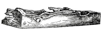 Modor and his helpers took the split boards they had made and bent them over the framework, with a peg at each rib to hold them, and in this way covered the whole framework of the boat. Of course a boat built in this rough way would not be water-tight; there were many joints[255] and seams between the rough planking through which water would leak. But Modor had found, oozing from the pine trees, a black, sticky sort of gum or pitch, and this, with soft fibres from the bark of trees, he used to calk his boat and make it tight. The way he did this was to heat the pitch in a large shell, dip the fibres in it, and then drive them into the cracks with a stone wedge. In this way, after many trials, Modor at last got his boat so that it would not leak.