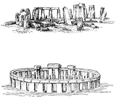 The ancient ruins in Wiltshire, England. Below, a diagram showing their original construction.