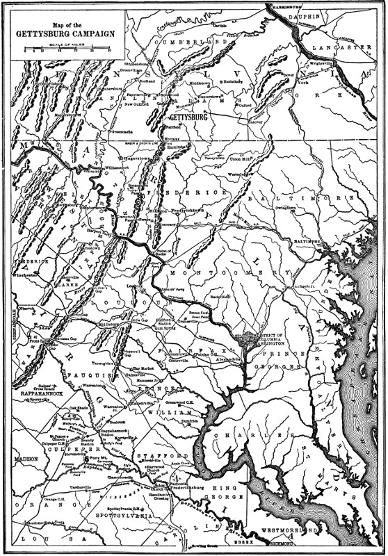 Map showing country through which the armies approached Gettysburg
