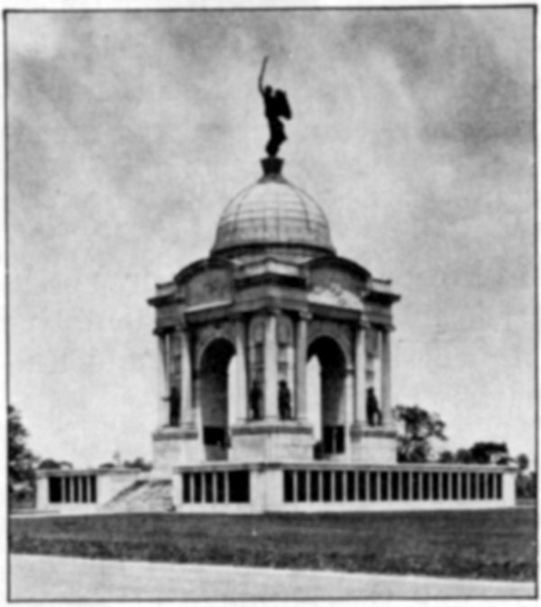 The Pennsylvania Monument, with bronze figures of distinguished officers and a roster of all Pennsylvanians in battle.