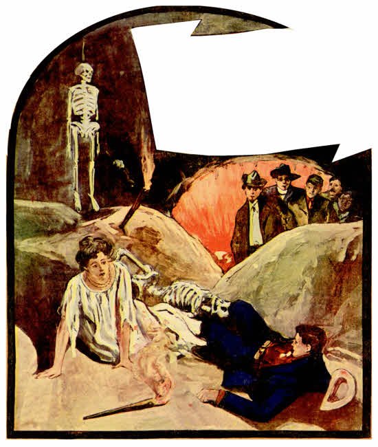Something snapped above them, and down came the girl, bringing the skeleton with her, knocking the daring boy flat upon his back.