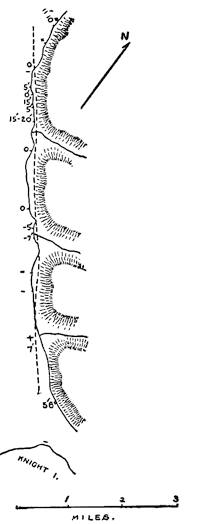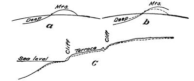 | The characters in which the record has been preserved—Even coast line the mark of uplift—A ragged coast line the mark of subsidence—Slow uplift of the coasts; the coastal plain and cuesta—The sudden uplifts of the coast—The upraised cliff—The uplifted barrier beach—Coast terraces—The sunk or embayed coast—Submerged river channels—Records of an oscillation of movement—Simultaneous contrary movements upon a coast—The contrasted islands of San Clemente and Santa Catalina—The Blue Grotto of Capri—Character profiles—Reading references | 245 |