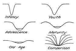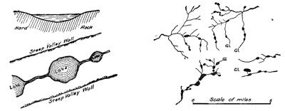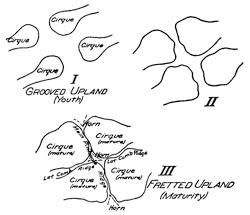 | The newly incised upland and its sharp salients—The stage of adolescence—The maturely dissected upland—The Hogarthian line of beauty—The final product of river sculpture: the peneplain—The river cross sections of successive stages—The entrenchment of meanders with renewed uplift—The valley of the rejuvenated river—The arrest of stream erosion by the more resistant rocks—The capture of one river by another—Water and wind gaps—Character profiles—Reading references | 169 |