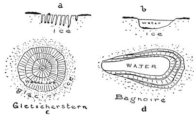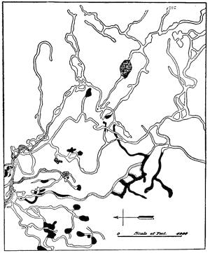 | The descent within the unsaturated zone—The trunk channels of descending water—The caverns of limestones—Swallow holes and limestone sinks—The sinter deposits—The growth of stalactites—Formation of stalagmites—The Karst and its features—A desert from the destruction of forests—The ponore and the polje—The return of the water to the surface—Artesian wells—Hot springs and geysers—The deposition of siliceous sinter by plant growth—Reading references | 180 |