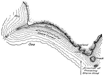 | The motion of a water wave—Free waves and breakers—Effect of the breaking wave upon a steep, rocky shore: the notched cliff—Coves, sea arches, and stacks—The cut rock terrace—The cut and built terrace on a steep shore of loose materials—The work of the shore current—The sand beach—The shingle beach—Bar, spit, and barrier—The land-tied island—A barrier series—Character profiles—Reading references | 231 |