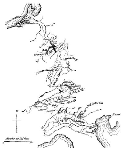 That there is a real place for such a cultural study of geology within the University is believed to be shown by the increasing number of students who have elected the work. Even more than in former years the American travels afar by car or steamship, and the earth’s surface features in all their manifold diversity are thus one after the other unrolled before him. The thousands who each year cross the Atlantic to roam over European countries may by historical, literary, or artistic studies prepare themselves to derive an exquisite pleasure as they visit places identified with past achievement of one form or another. Yet the Channel coast, the gorge of the Rhine, the glaciers of Switzerland, and the wild scenery of Norway or Scotland have each their fascinating story to tell of a history far more remote and varied. To read this history, the runic characters in which it is written must first of all be mastered; for in every landscape there are strong individual lines of character such as the pen artist would skillfully extract for an outline sketch. Such character profiles are often many times repeated in each landscape, and in them we have a key to the historical record.