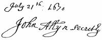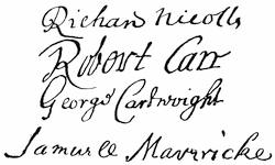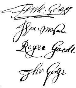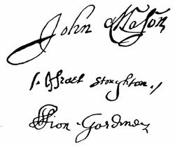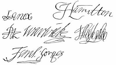 | Autographs: J. Popham, 175; Ferd. Gorges, 175. | |