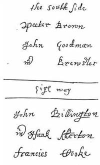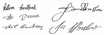 | Autographs: John Smyth, 257; John Robinson, 259; Robert Browne, 261; Francis Johnson, 261; Signatures of Mayflower Pilgrims (William Bradford, Myles Standish, William Brewster, John Alden, John Howland, Edward Winslow, George Soule, Francis Eaton, Isaac Allerton, Samuel Fuller, Peregrine White, Resolved White, John Cooke), 268; Dorothy May, 268; William Bradford, 268; Thomas Cushman, 271; Alexander Standish, 273; James Cole, senior, 273; Signers of the Patent,1621 (Hamilton, Lenox, Warwick, Sheffield, Ferdinando Gorges), 275; Governors of Plymouth Colony (William Bradford, Edward Winslow, Thomas Prence, Thomas Hinckley, Josiah Winslow), 278. | |