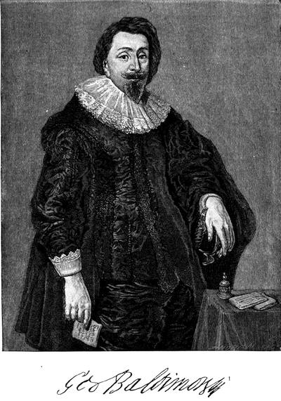 [893] There is a fine portrait of the first Lord Baltimore in the gallery of the Earl of Verulam at Glastonbury, England. It was painted by Mytens, court painter to James I. An engraving from it is in the possession of the Maryland Historical Society. In 1882 a copy of this portrait was presented to the State of Maryland by John W. Garrett, Esq. It is engraved in McSherry’s Maryland, p. 21, as from an original in the great gallery of Sir Francis Bacon; and again in S. H. Gay’s Popular History of the United States, i. 485. An engraved portrait of Cecilius, second Lord Baltimore, at the age of fifty-one, made by Blotling, in 1657, is in the possession of the Maryland Historical Society. Engravings of these portraits of the two lords are given in the present chapter.