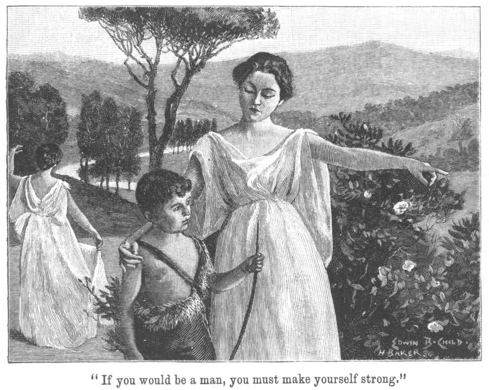 Then he sang of health, and strength, and manhood, and a valiant heart; and of music and hunting, and wrestling, and all the games which heroes love; and of travel, and wars, and sieges, and a noble death in fight,; and then he sang of peace and plenty, and of equal justice in the land; and as he sang, the boy listened wide-eyed, and forgot his errand in the song.