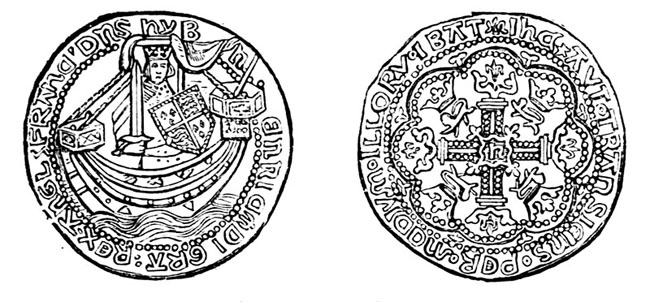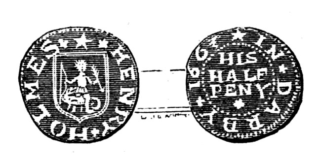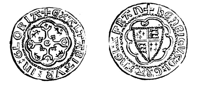 [4] One variety, the “Pudsey” Shilling and Sixpence, said to have been used in the wars in Ireland, has an escallop shell filling the inner circle.
