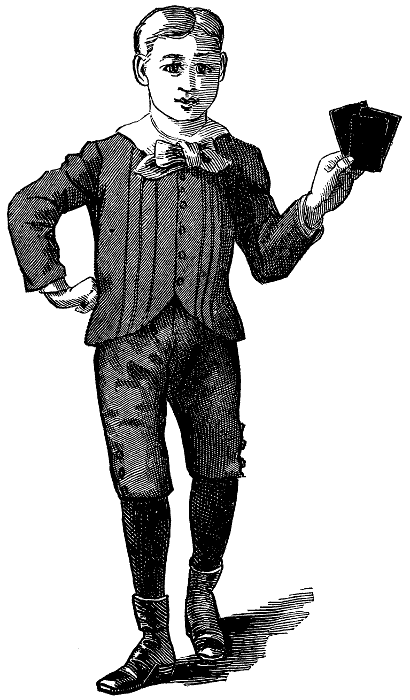 One day a little fellow who had been repeatedly mystified 37by this trick, saw the cards which his brother had prepared lying on the table. He took them up, examined them carefully for a moment, then, with his little face all aglow at the revelation, he exclaimed, “Ha! I’ve found out how you do it now, you just blow charcoal on the other part.” How he got rid of the part already black, he did not explain, nor did we think to ask him, but he had at last solved the puzzle of their turning black, and that was all he cared to do at the time.