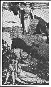Wotan and the rest of the gods were in a serious dilemma. They must not get back the cursed ring, for its possession would bring ruin. And yet if they left it with the giant Fafner, Alberich might recover it and make the gods his slaves. There was only one way out of the dilemma. The ring must go to someone whom the gods need not fear. As long as no enemy had the ring, the gods were safe enough in their new citadel. This was guarded by the Valkyr Maidens, nine of them, all daughters of Wotan and Erda. Their mission was to follow mortals in combat and to carry the fallen heroes on their horses to Walhall to form its guard. Having provided for present safety, Wotan looked to the future. He went to the earth and, uniting himself with a mortal woman, under the name of Wälse, meaning “wolf,” he founded the formidable race of the Wälsungs—Siegmund and Sieglinde—on whom he set his hopes.