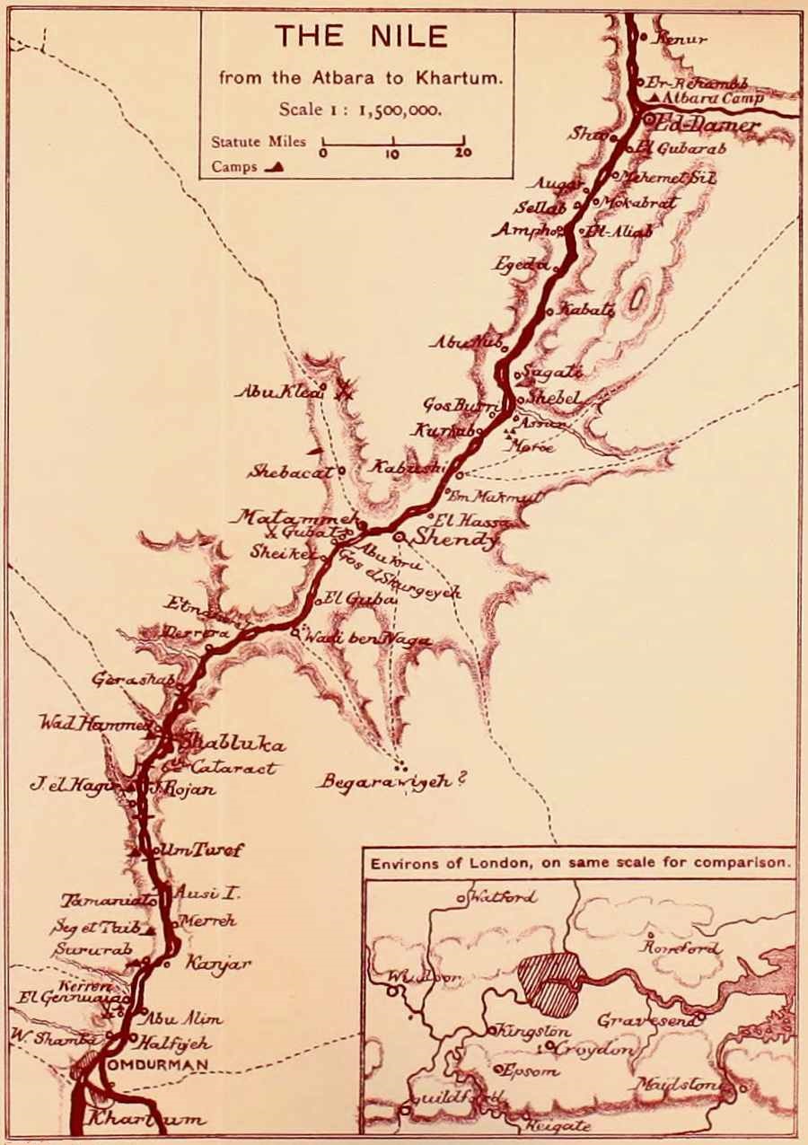 A Comfortable Breakfast—All ready for the Dervishes—Egyptian Cavalry engage the Enemy—Gunboats to the Rescue—The Joy of Battle—Here they come!—A [xi] Splendid Spectacle—The Dervishes open Fire—The First Shell—A Dervish Battery—Effect of our Shell Fire—Wounded Men—Curious Tricks played by Bullets—Maxims at Work—A Dervish Cavalry Charge—Persistent Sharpshooters—The Army leaves the Zeriba—The Lancers' Charge—Mutilation of the Dead—Wounded Horses—Killing the Wounded Dervishes—Renewal of the Fight—Steadiness of the Sudanese and Egyptians—Final Repulse of the Enemy—Dreadful Effects of our Fire—Men falling out—We halt beside a Khor—Regimental Music—Escape of the Khalifa—Death of Hon. Hubert Howard—A Champagne Dinner in the Street—The End of Mahdism