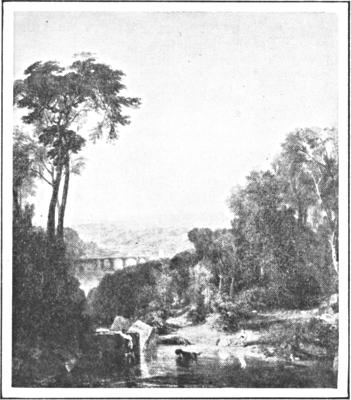 The gallery some years ago had a very extensive collection of Turners, but many of them are now removed to the Tate Gallery. The celebrated ones, such as the “Frosty Morning,” “Crossing the Brook,” and “Rain, Steam and Speed,” are still here. When Turner died he left many canvases and about 19,000 sketches and drawings to the National Gallery. Among the canvases were a “Dido Building Carthage” and a “Sun Rising through Vapor” that Turner in his will requested should be hung between two large pictures by Claude Lorrain—the thought being to show how far Turner surpassed Claude. But the comparison is not wholly in Turner’s favor. He is flushed, hectic, a little spectacular, where Claude is cool, calm and serene. The Turners are more cunning in artifice, but they lack Claude’s simplicity and sincerity. Claude and Poussin (poo´-sang), by whom there are plenty of canvases here, were past masters in their time and it is somewhat dangerous for any modern to put himself in comparison with them. Art is not, after all, a thing that will bear comparisons so well as contrasts. It is supposed to reveal the individuality of the man behind the brush, and one great pleasure of the great galleries is that they show us these differing individualities—even as Turner and Claude.