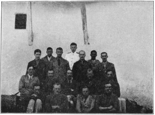 “HILL HAD TAKEN THE FIRST PHOTOGRAPH BEFORE I WAS READY.” THE COMMANDANT, PIMPLE AND COOK AT THE FINDING OF THE FIRST CLUE TO THE TREASURE