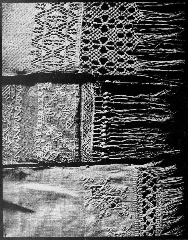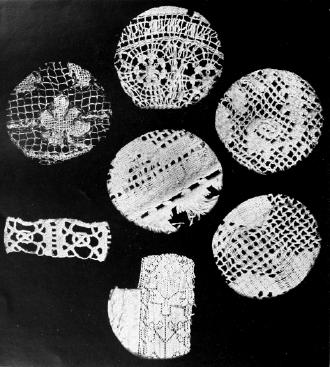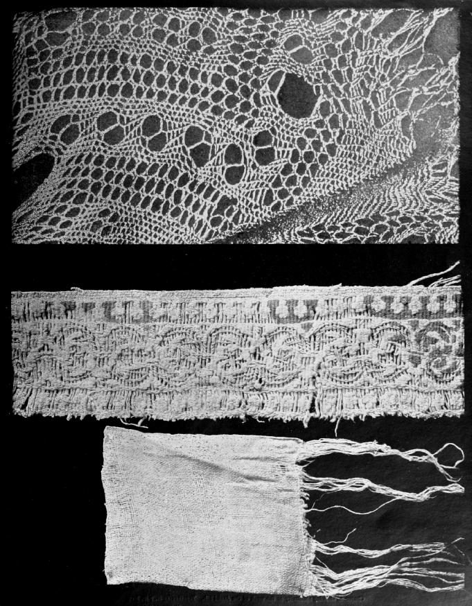 | V. | (1) A Piece of Bobbin-made Lace (2) Darned Work with White Linen Thread (3) Portion of a Mummy Cloth |