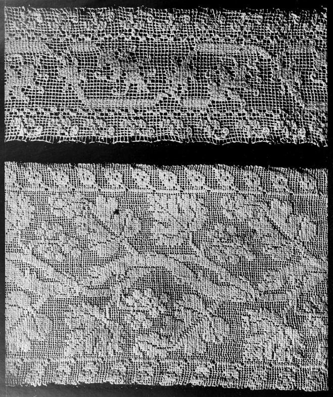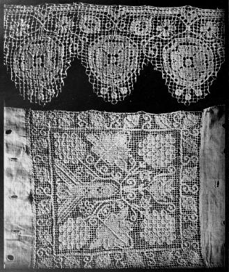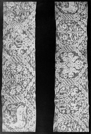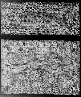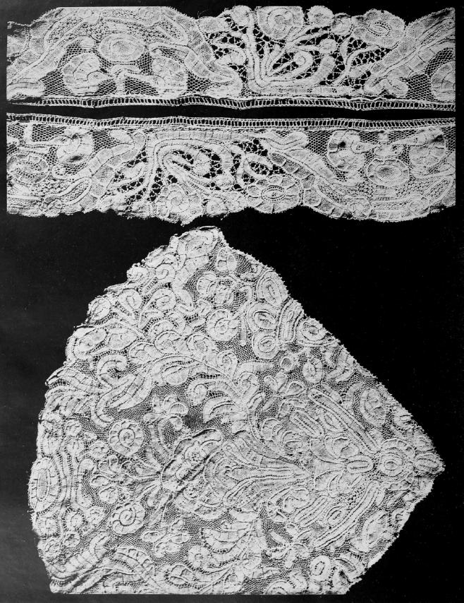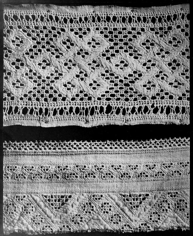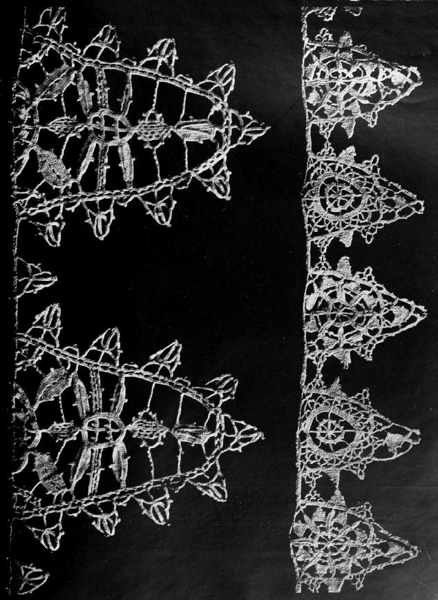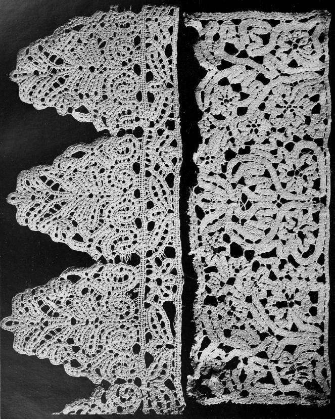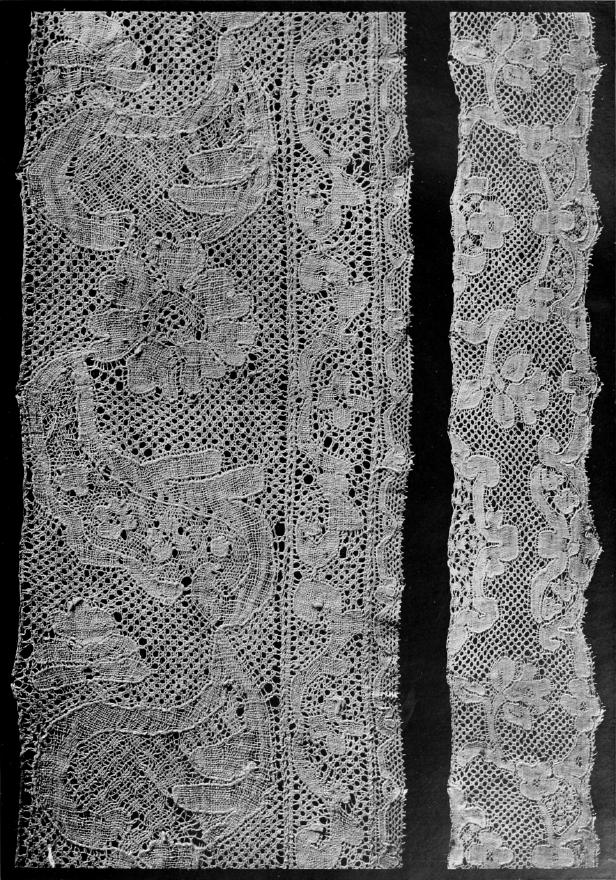 No. 1 is made up of three lengths of lace sewn together. The straight edge indicates perhaps an earlier date for this interesting specimen than that of the narrower piece.