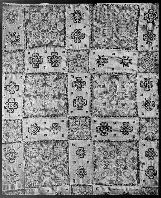 | XL. | Bed-Cover of Cut Linen Lace (Tela Tagliata a Foliami and Punto a Festone) |