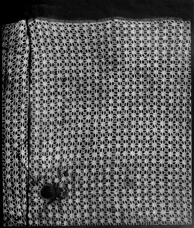 No. 2. A large flower repeated forms the edge. The characteristic very simple réseau is spotted with groups of six small square dots