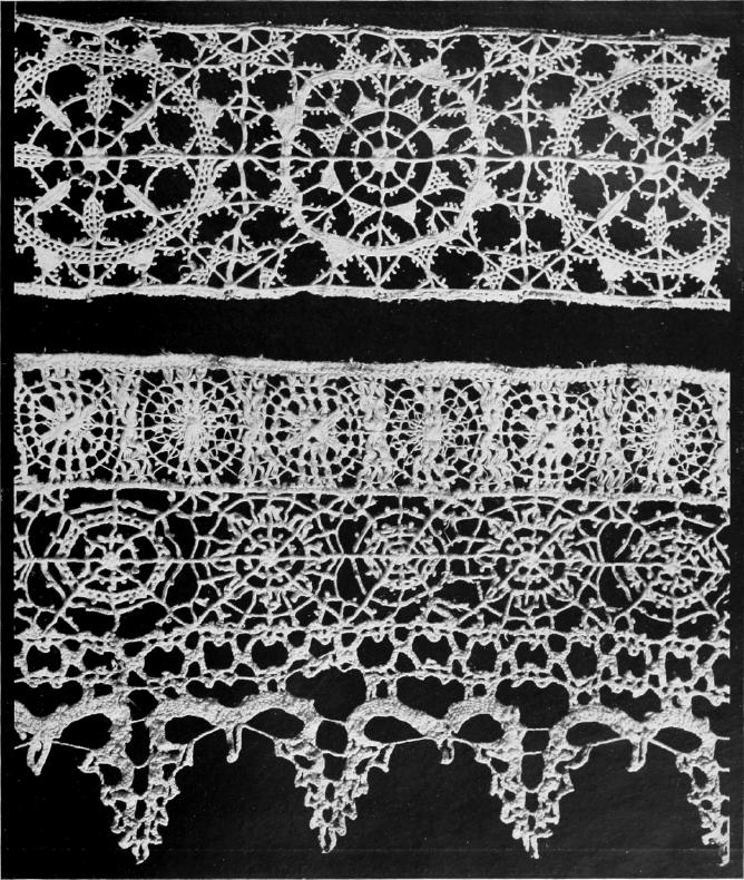 Plate CXVII. TWO BORDERS OF BOBBIN-MADE LACE