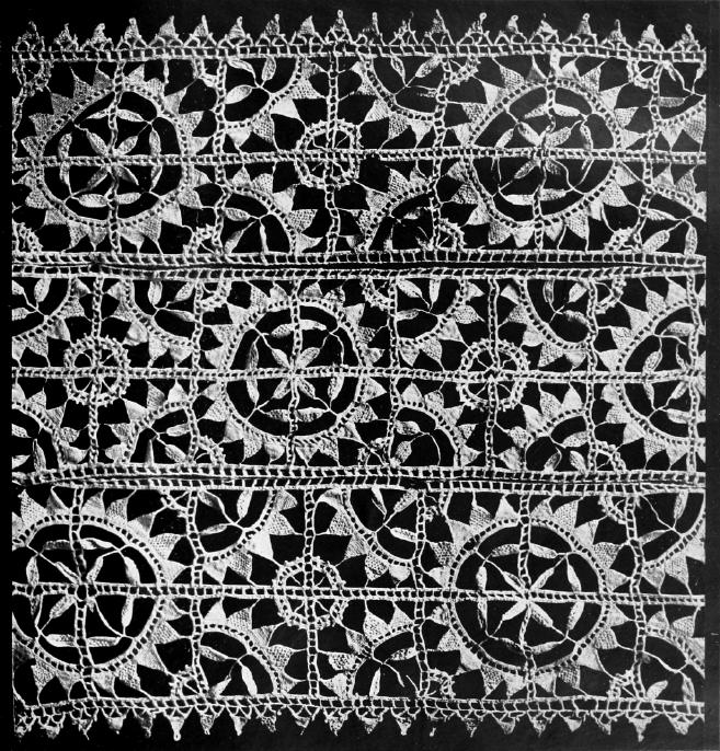| XXI. | Band or Flounce of Tela Tirata or Drawn Work |