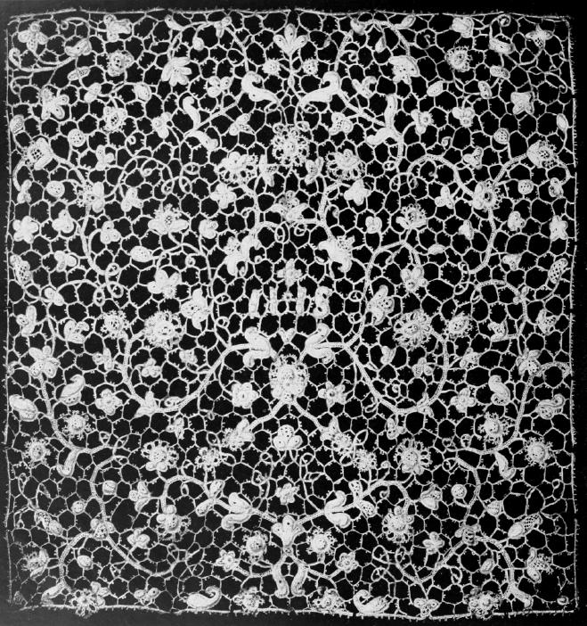 | XLVIII. | Paten Cover of Needle-Point Raised, or Rose-Point Lace, very similar in style and gracefulness to that of No. XXXIII. |