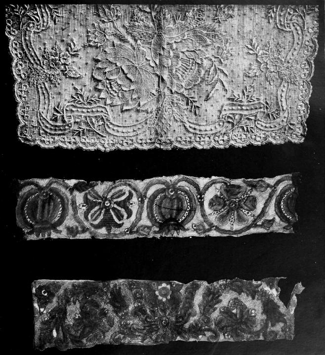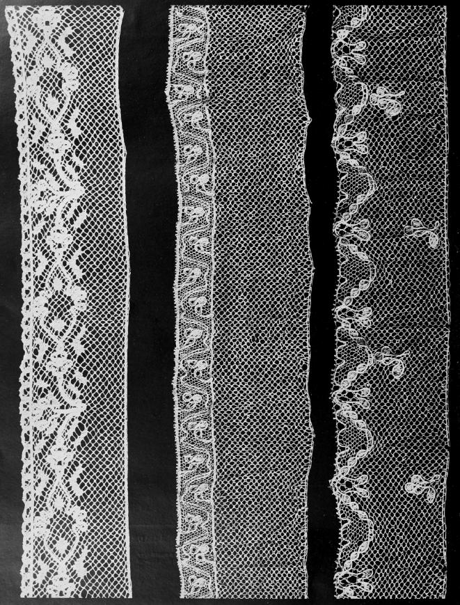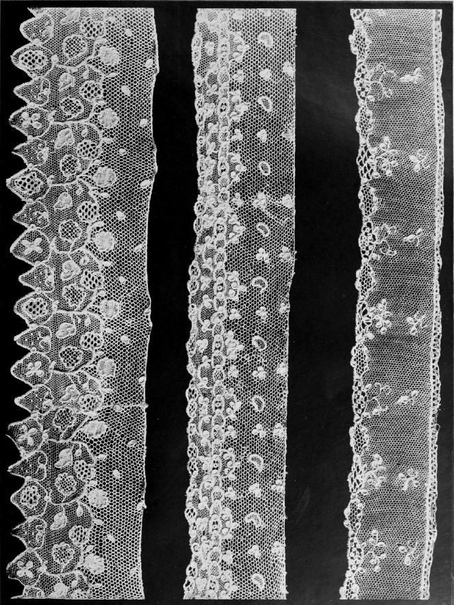 Plate CI. THREE PATTERNS OF BOBBIN-MADE MECHLIN LACE