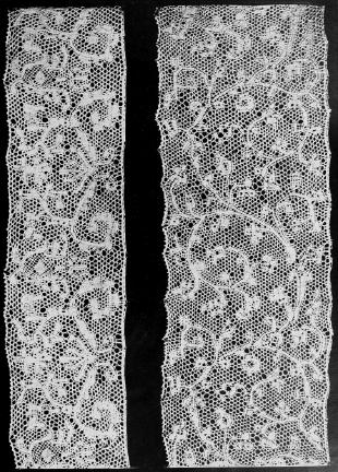 The patterns of the later style of lace are much lighter in effect and gradually become merely a border of small floral ornament.